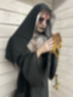 A zombie doctor is a gruesome figure clad in torn, bloodstained medical scrubs, with pale, mottled skin stretched tightly over decayed flesh. Its vacant, sunken eyes glow with a sinister hue, and a rotting stethoscope hangs around its neck. The doctor’s hands are rotten yet eerily dexterous, while a tattered surgical cap clings to its head, hinting at its former profession. Its movements are jerky and unpredictable, driven by an insatiable hunger, making it a haunting blend of medical familiarity and undead horror. Brought to you by Murder Beach Productions.